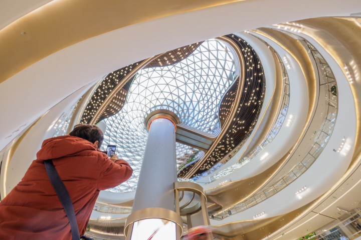 12月25日,湾里·王府井WellTown,市民在中庭拍照。新京报记者王子诚摄